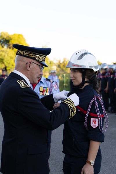 La cérémonie a débuté par la remise de la médaille d’honneur des sapeurs-pompiers, échelon bronze, au médecin-capitaine Émilie PORTEMAN pour ses dix années de service, distinction remise par Monsieur le sous-préfet.